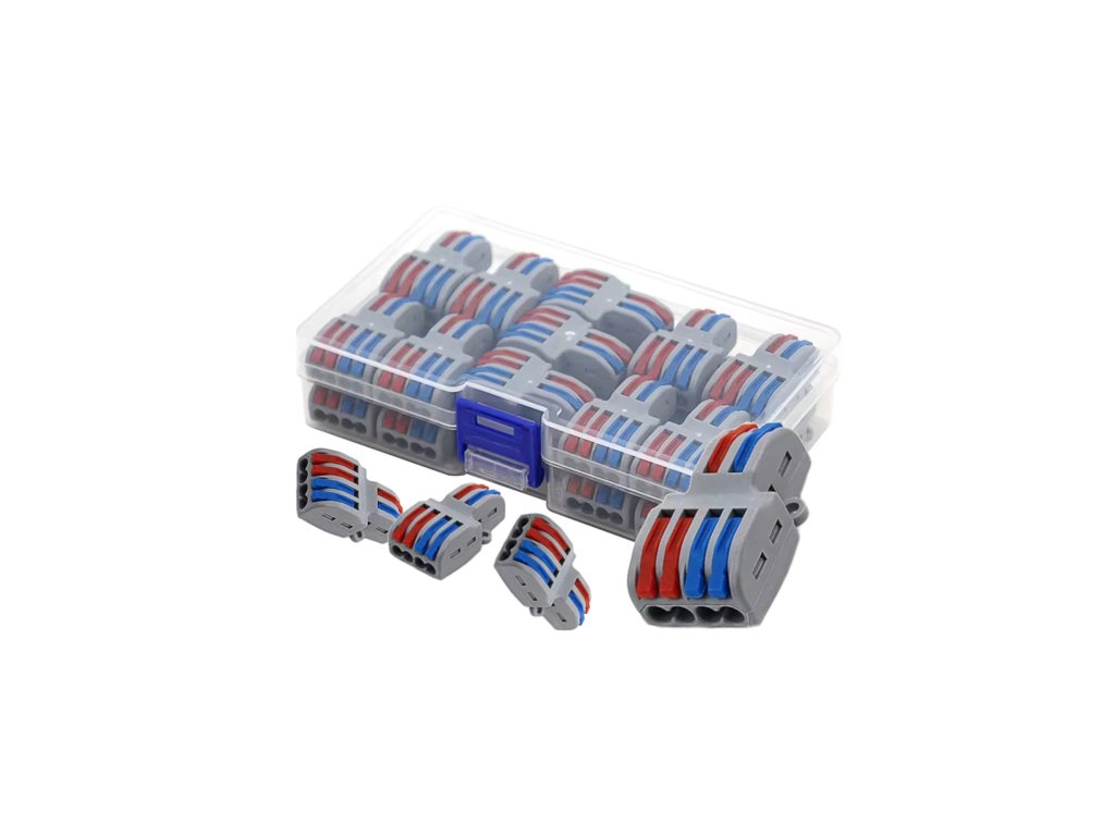 22 kusov obojstranných rozdeľovačov typu push-in, zabalených v praktickej krabičke uľahčujúcej skladovanie a prepravu.