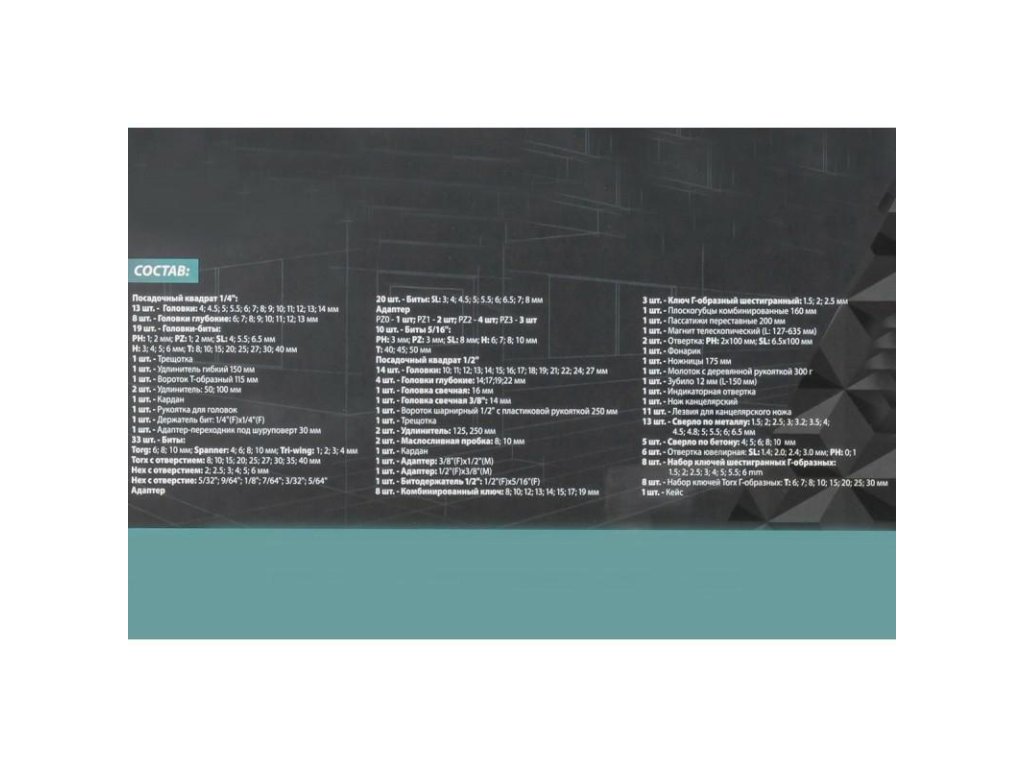 , zabalených vo funkčnom nástrojovom kufríku. Táto sada je nenahraditeľná pre všetkých nadšencov kutilstva, profesionálnych automechanikov a osoby potrebujúce rozsiahly sortiment nástrojov.Nástroje boli starostlivo vybrané, aby Vám poskytli najvyššiu kvalitu a všestrannosť. Vyrobené z