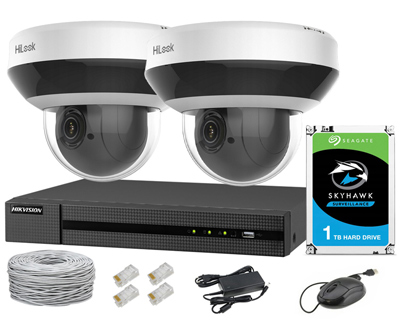 Súprava na IP monitorovanie, 2 otočné PTZ kamery 4Mpx, IR20, NVR 4xPoE, Disk 1TB - Hilook by Hikvision