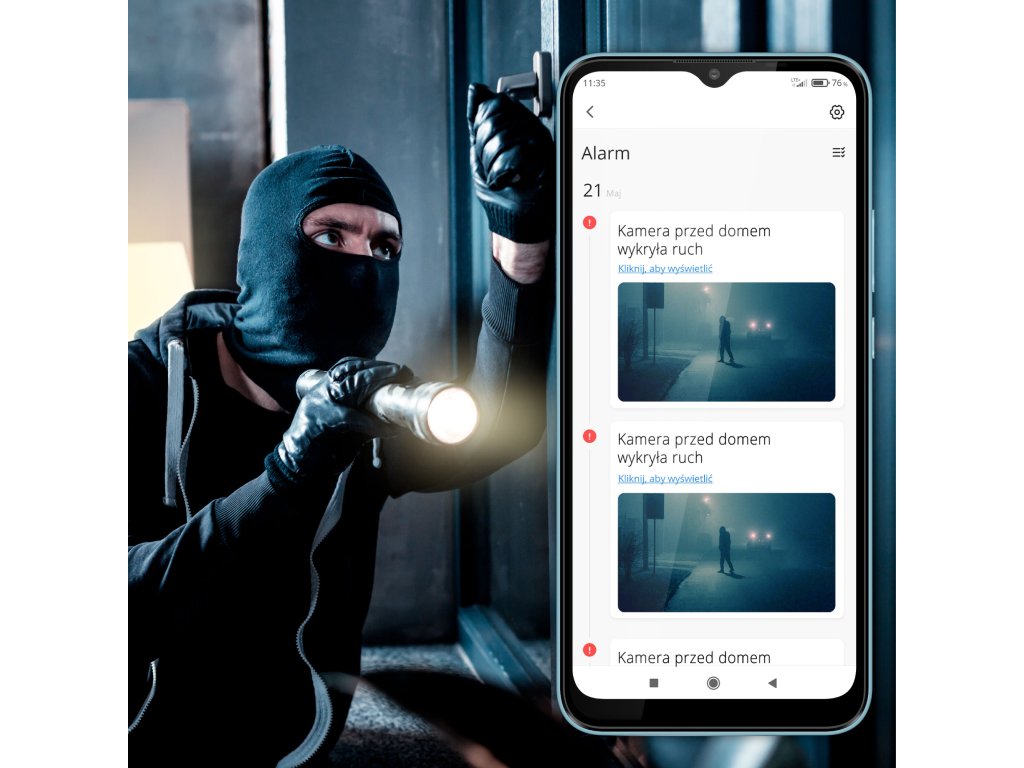 Automatická ochranaReagujte rýchlo na každú hrozbu! Vďaka detektoru pohybu vám príde na telefón upozornenie, keď sa na dvore objaví narušiteľ. Čo viac, systém monitorovania Kruger&Matz má funkciu, ktorá umožňuje automatické začatie nahrávania, keď sa zistí pohyb.