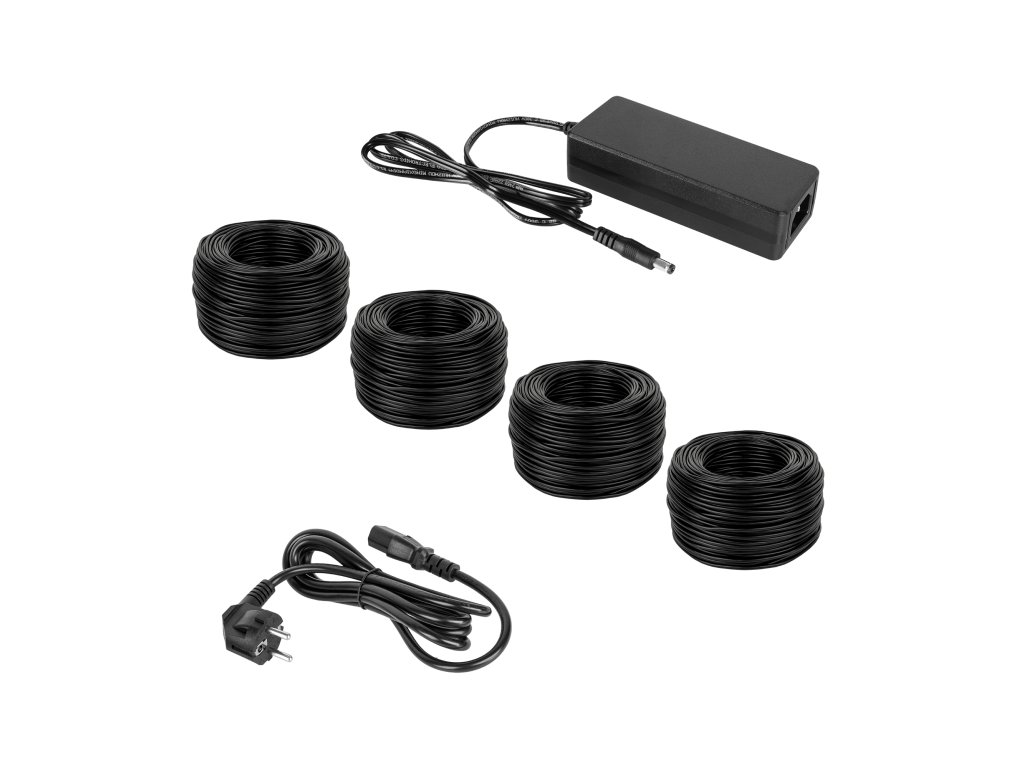 Obsah súpravy: rekordér, napájací zdroj rekordéra, kamera (4 ks), kábel RJ-45/15 m (4 ks), myš