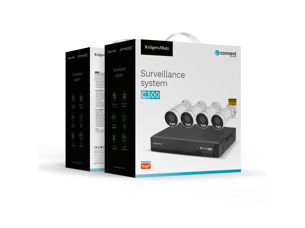 Jasná kontrolaKruger&Matz Connect C300 je ideálny pre osoby, ktoré od svojho monitorovacieho systému očakávajú skutočne vysokú kvalitu nahrávok! Táto súprava umožňuje nahrávanie rýchlosťou až 30 snímok za sekundu a má rozlíšenie 5 Mpx (2560 x 1944 px). To zaručuje detailný obraz, dokonca aj v náročných poveternostných podmienkach.