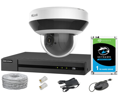 Súprava na monitorovanie IP, otočná kamera PTZ 4Mpx, IR20, NVR 4xPoE, Disk 1TB - Hilook by Hikvision