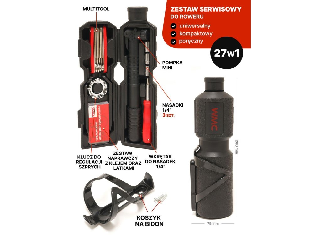 SÚPRAVA NA OPRAVU BICYKLA 27w1 BIDON