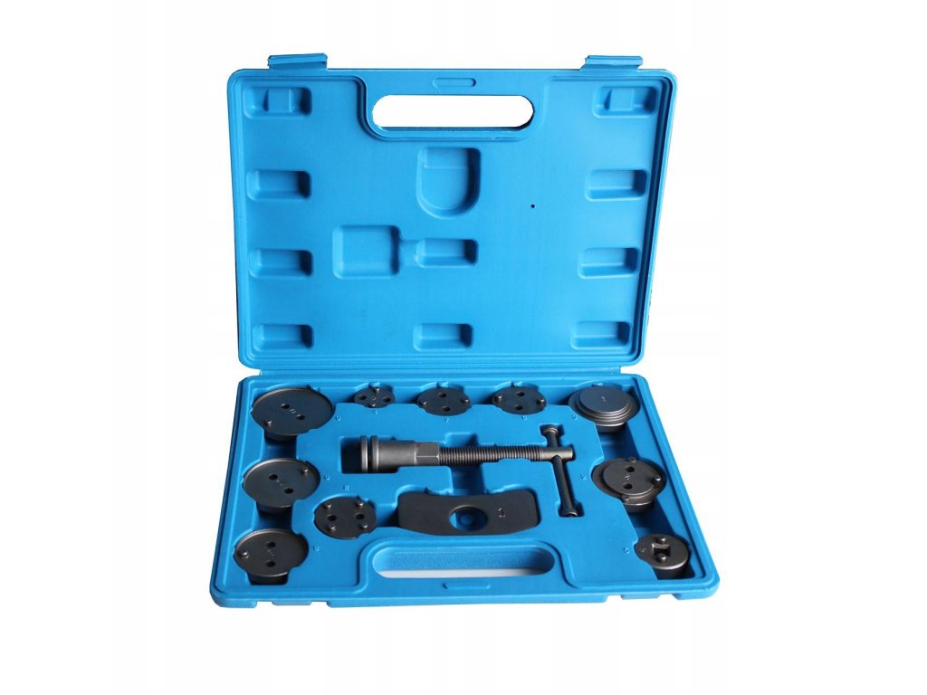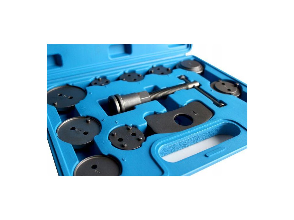 Nezbytné pri opravách vozidiel vybavených kotúčovými brzdami. Súprava slúži na zasúvanie (stláčanie) piestov v valcoch brzdových systémov. Je nevyhnutná pri opravách vozidiel vybavených kotúčovými brzdami. Presné prispôsobenie adaptéra a piestu zaručuje správne vsunutie piestu do valca brzdového strmeňa. Nezbytná pre každú autoservisnú dielňu, kde pomáha urýchliť servisovanie brzdových systémov.