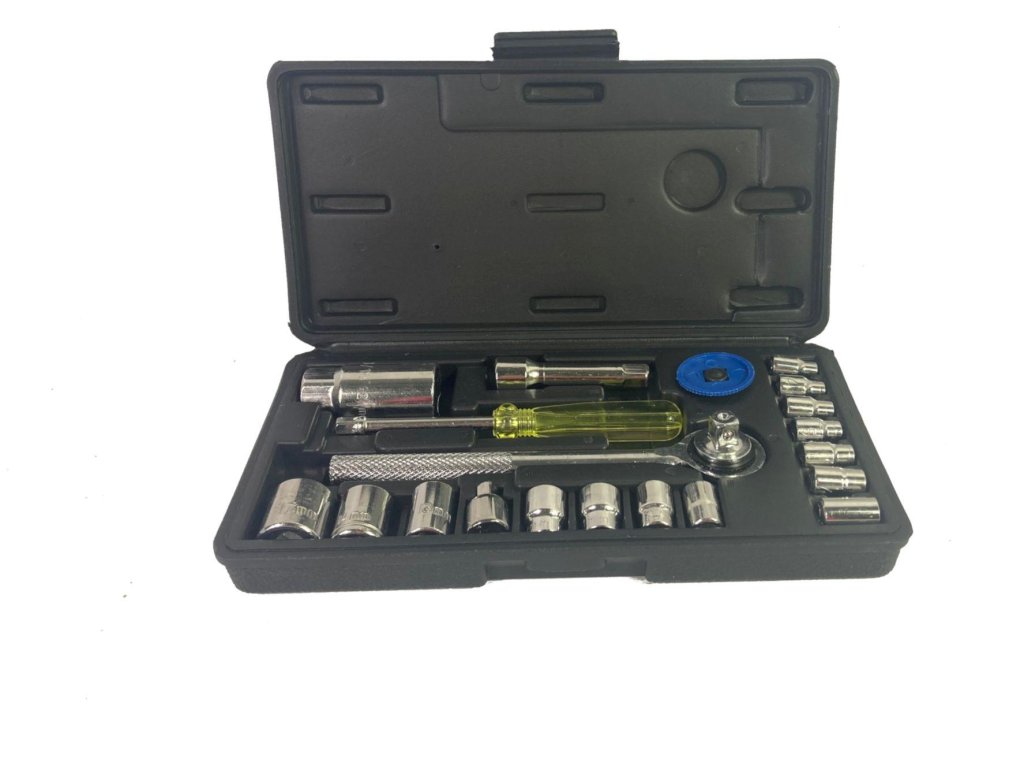 Súprava nástavcových kľúčov sa skladá z 21 ks, vyrobených z chrómo-vanádiovej ocele.