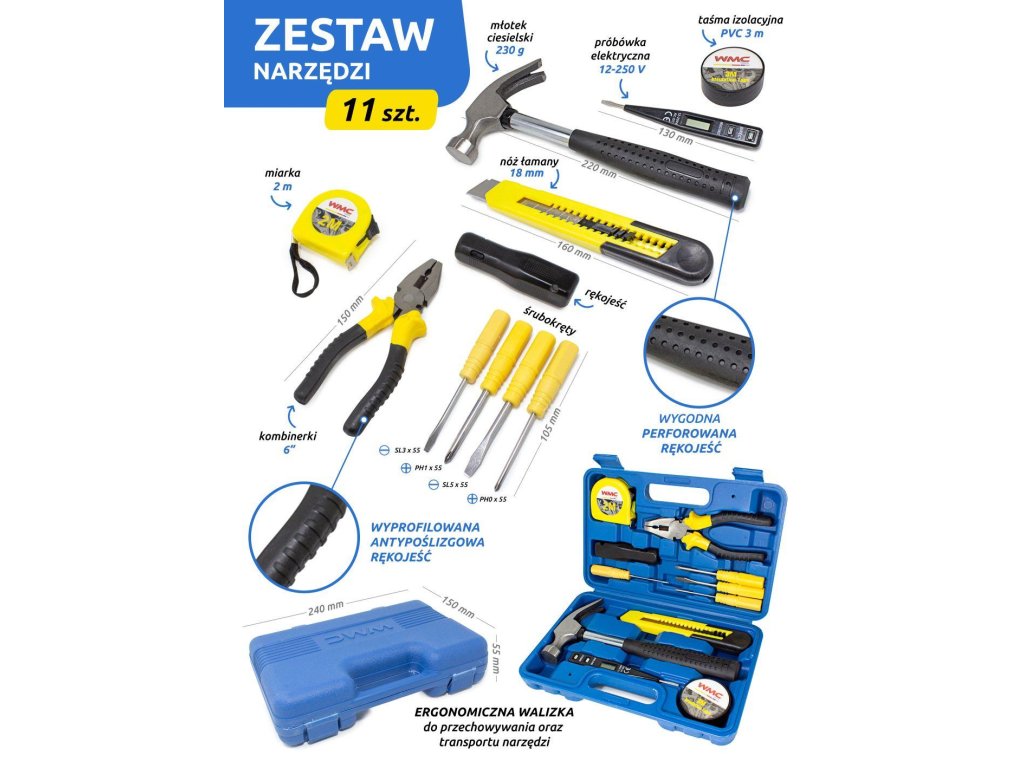 Funkčná súprava obsahuje najviac užitočné náradie, ktoré je potrebné v každej domácnosti alebo dielni.
