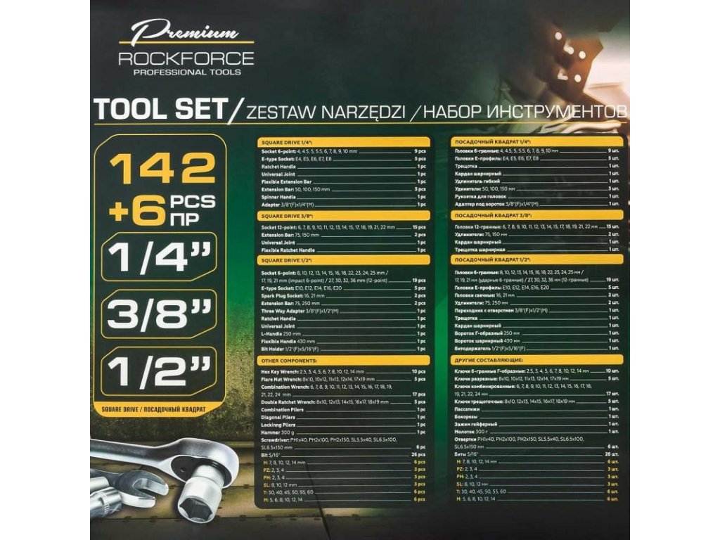 Súprava náradia 142+6ks. 1/4", 3/8"