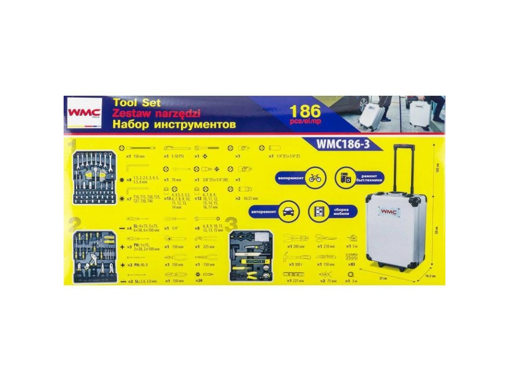 Súprava náradia 186ks. 1/4" a 1/2"