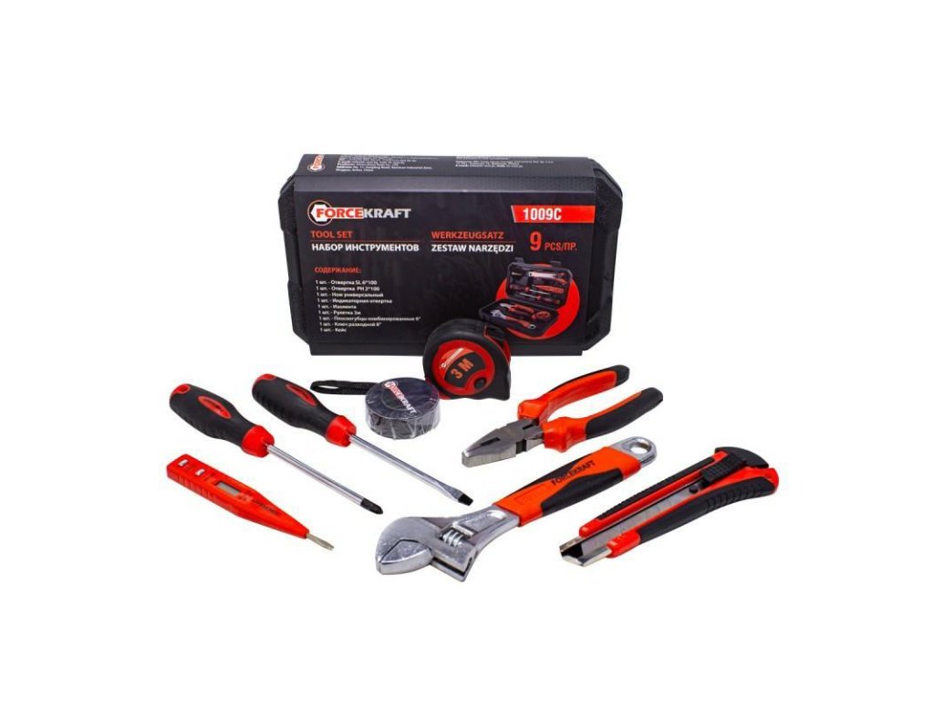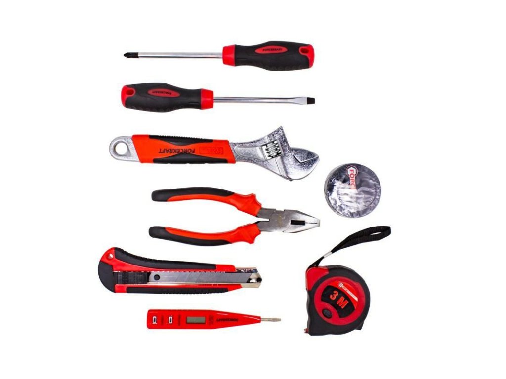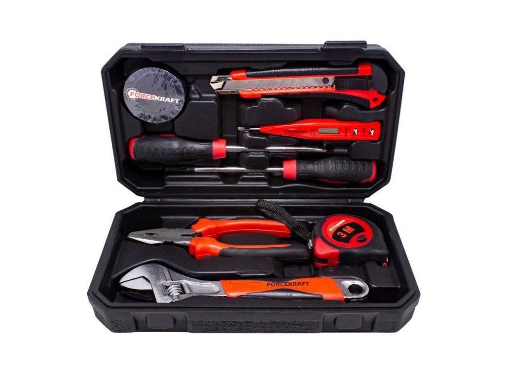 Funkčná súprava obsahuje najpotrebnejšie náradie potrebné v každej domácnosti alebo dielni.