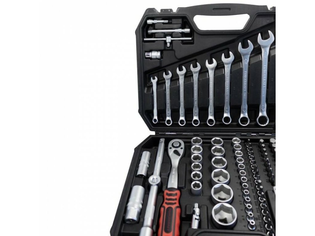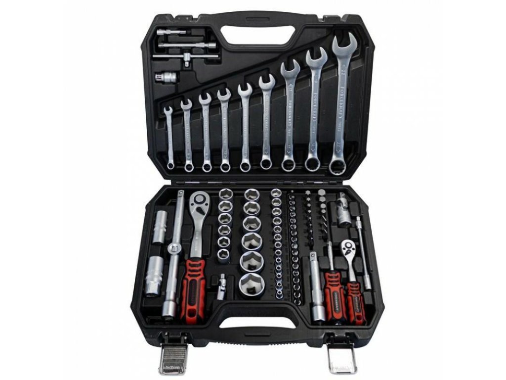 Celá sada nástrojov je uložená v veľmi odolnom a ergonomickom kufríku z plastu umožňujúcom jednoduché prenášanie a uskladňovanie súpravy.