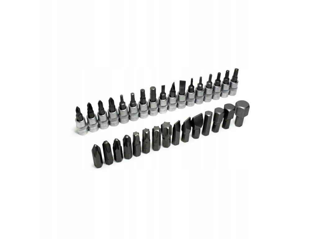 - Bity nadstavce 17 ks.: SL 4, 5.5, 7; PH 1, 2; PZ 1, 2; HEX 3, 4, 5, 6; T 8, 10, 15, 20, 25, 30; PZ1,PZ2