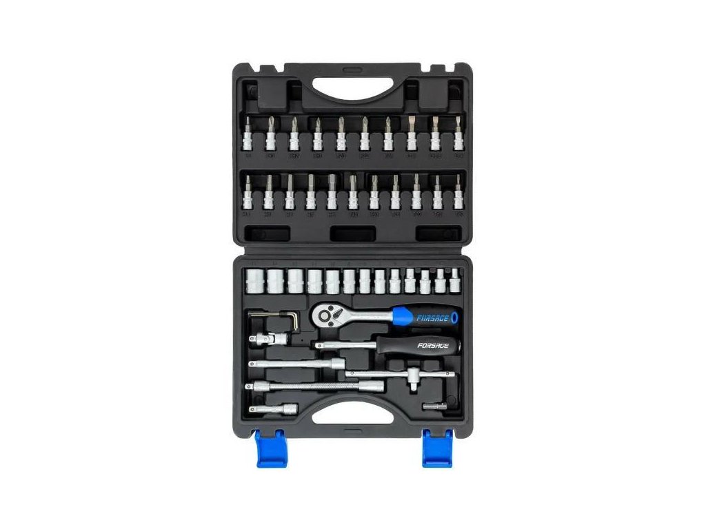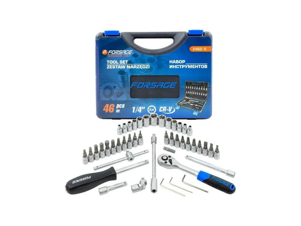 Súprava piatí 1/4" pozostáva z 46 prvkov, vyrobených z vysoko kvalitnej chróm-vanádiovej ocele.