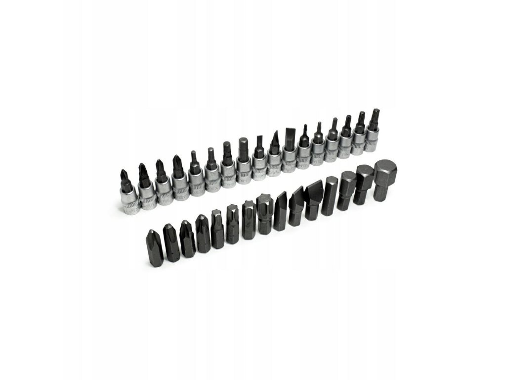 - Bity nadstavce 17 ks: SL 4, 5.5, 7; PH 1, 2; PZ 1, 2; HEX 3, 4, 5, 6; T 8, 10, 15, 20, 25, 30; PZ1,PZ2