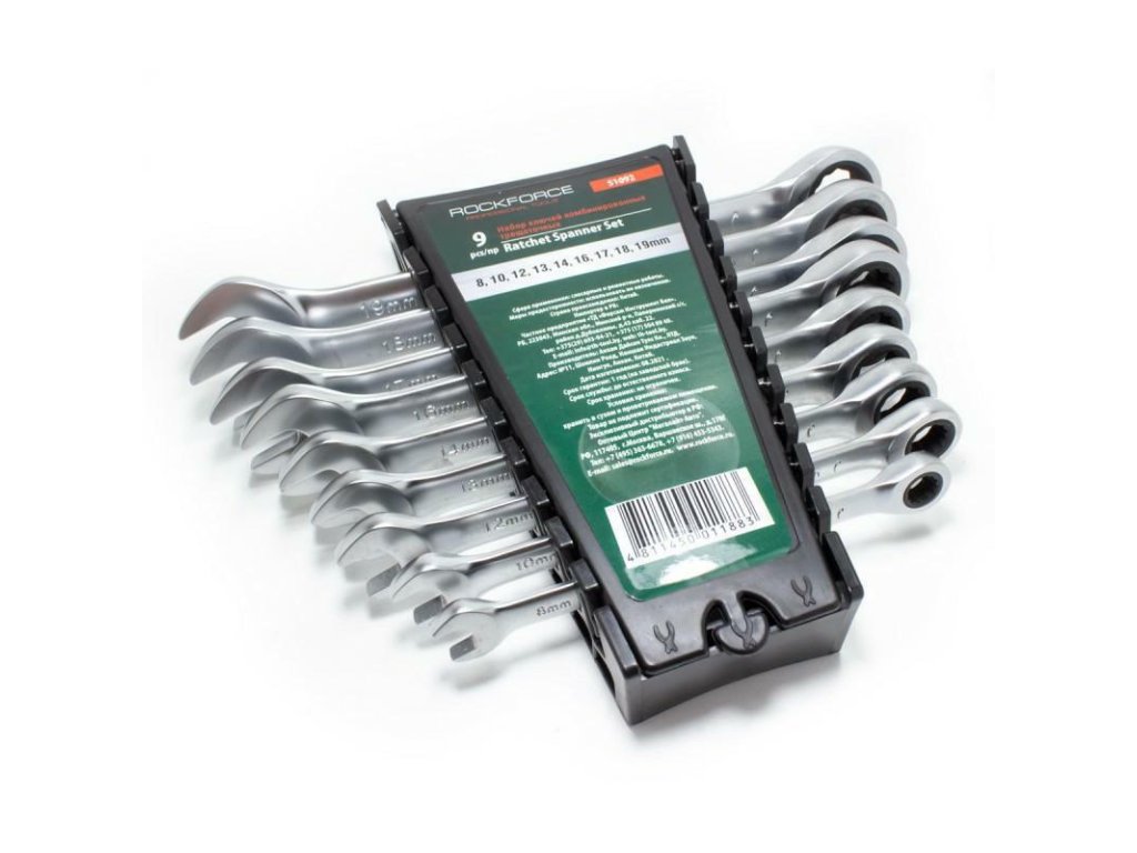 Sada plochých kľúčov značky Rockforce. Vyrobené z CrV ocele, štandard DIN 3110. Hlavy kľúčov leštené.