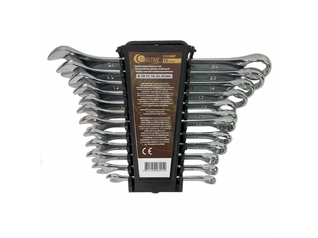 Sada kombinovaných kľúčov vyrobených z CrV ocele. Povrchová úprava: chrómovaná, saténová. Kľúče sú vyrobené z vysokokvalitnej CrV ocele, DIN 3113. Spĺňa požiadavky TUV GS.