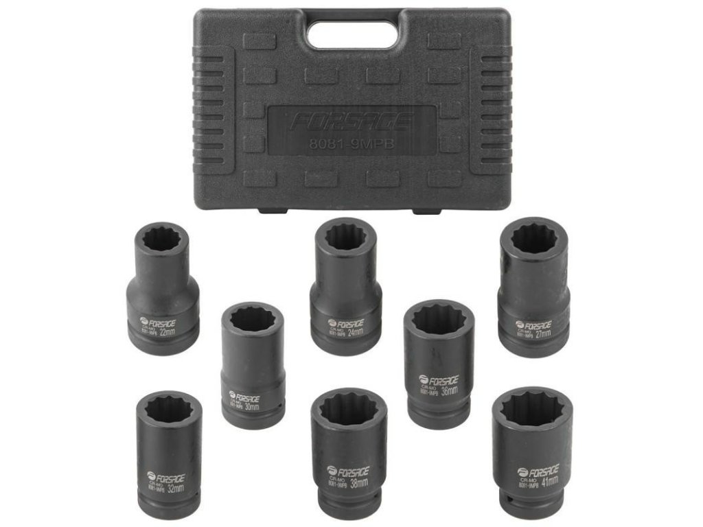 Súprava pozostáva z 8 kusov 12-hranných hlavíc vo veľkostiach na 1 ":