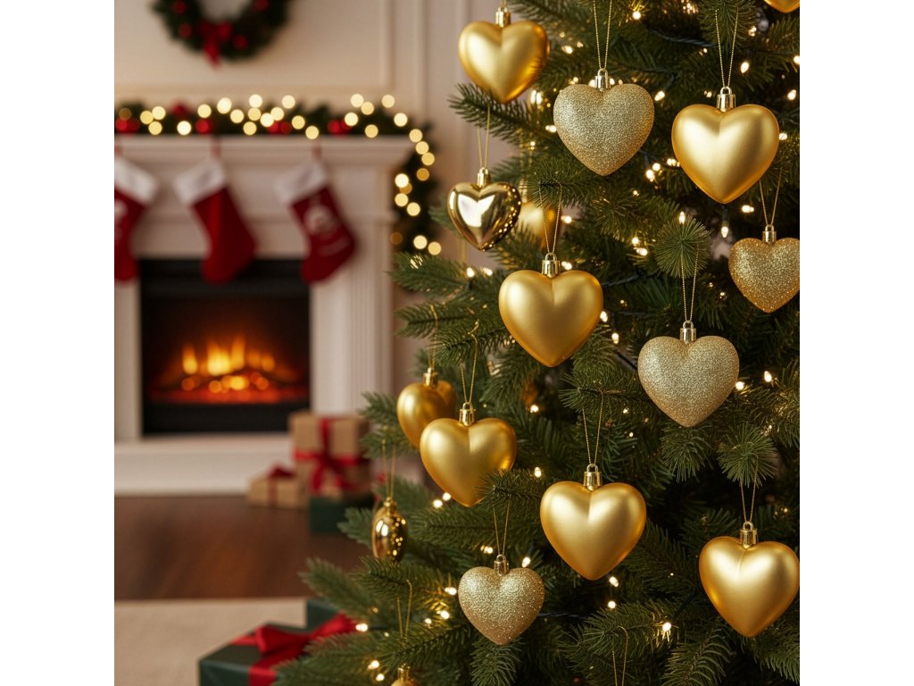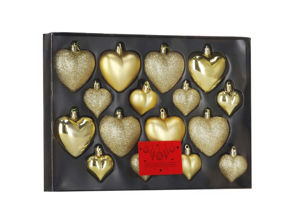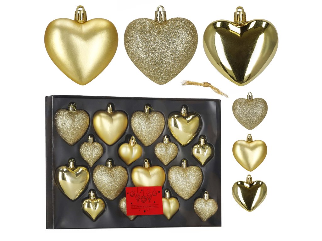 Súprava srdcovitých vianočných gúľ 16 ks.
