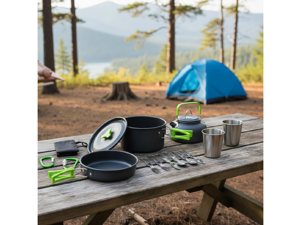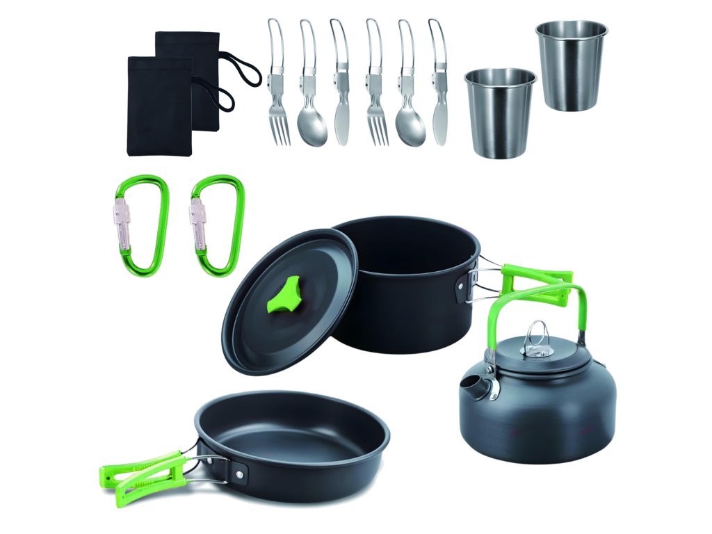Sada turistického riadu 18v1 je komplet, ktorý sa ideálne hodí na výpravy, kempovanie a akékoľvek druhy výletov do prírody. Vďaka nemu pripravíte jedlá v akýchkoľvek podmienkach. Sada je určená pre dve osoby a obsahuje všetky potrebné doplnky na varenie, pitie a jedenie. Mimoriadne funkčná a ľahko prenosná vďaka priloženému puzdru.