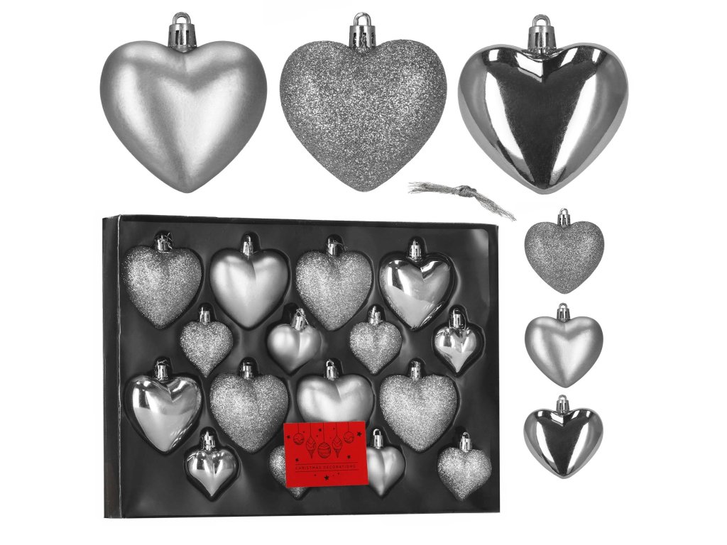 Súprava vianočných guľôčok v tvare srdca 16 ks - CA0960