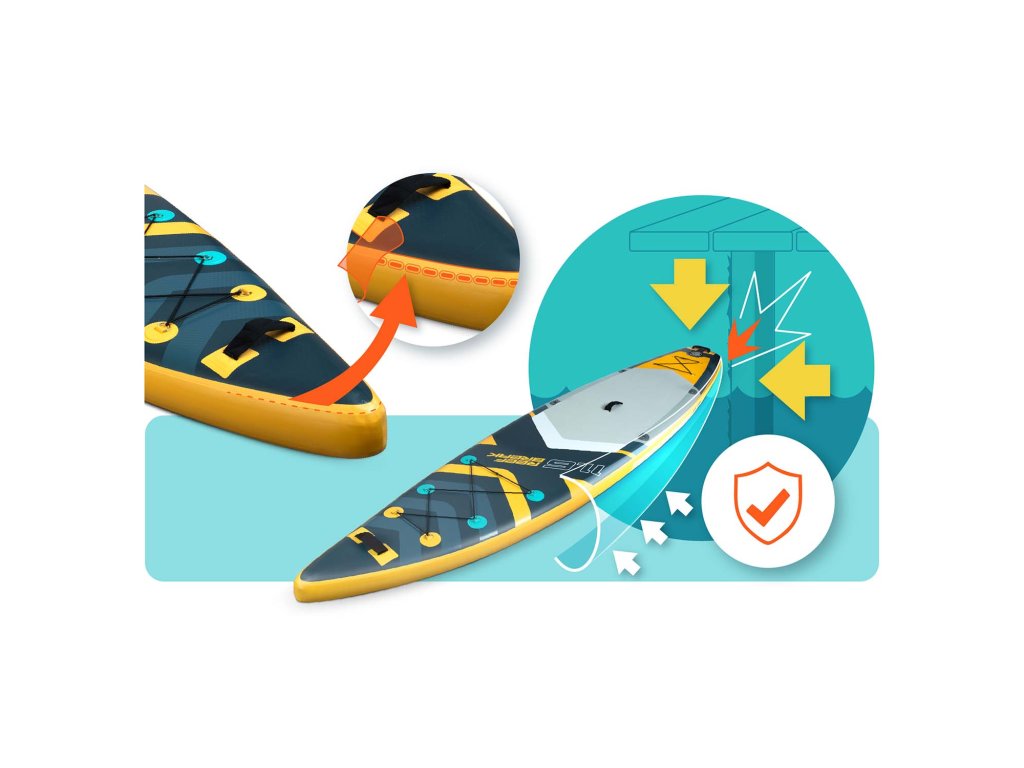 Špeciálne zpevnené okraje chránia dosku pred poškodením a zvyšujú jej odolnosť. Vďaka nim je váš SUP odolný voči nárazom a intenzívnemu používaniu – pripravený na každé vodné dobrodružstvo.