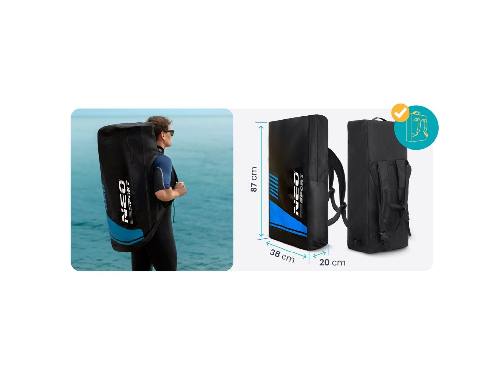 Kompaktné rozmery zabezpečujú, že batoh dokonale pojme SUP dosku a všetky príslušenstvá, bez zbytočného zaberania miesta.