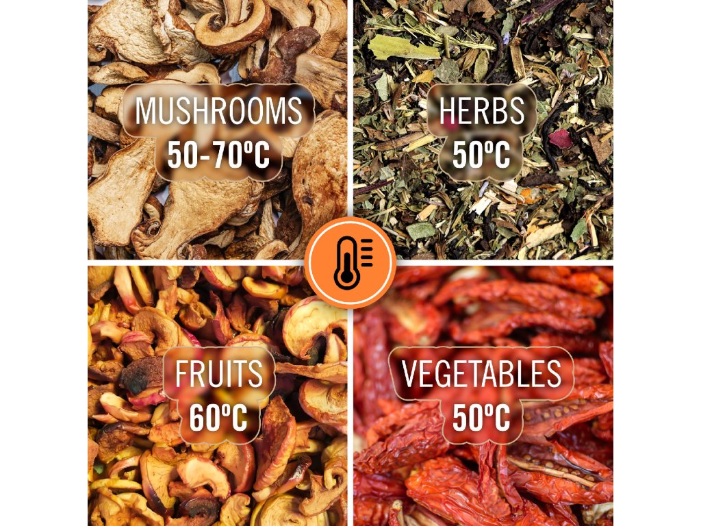 Spôsob použitia aj proces sušenia sú veľmi jednoduché. Stačí, ak na sitá rozložíte vopred pripravené produkty a nastavíte vhodnú teplotu, pri ktorej chcete potraviny sušiť. Prúd teplého vzduchu začne cirkulovať medzi horným krytom, sušiacimi sitami a základňou, čím sa odparí voda obsiahnutá v ovocí a zelenine, ale zachová sa ich chuť a vôňa.
