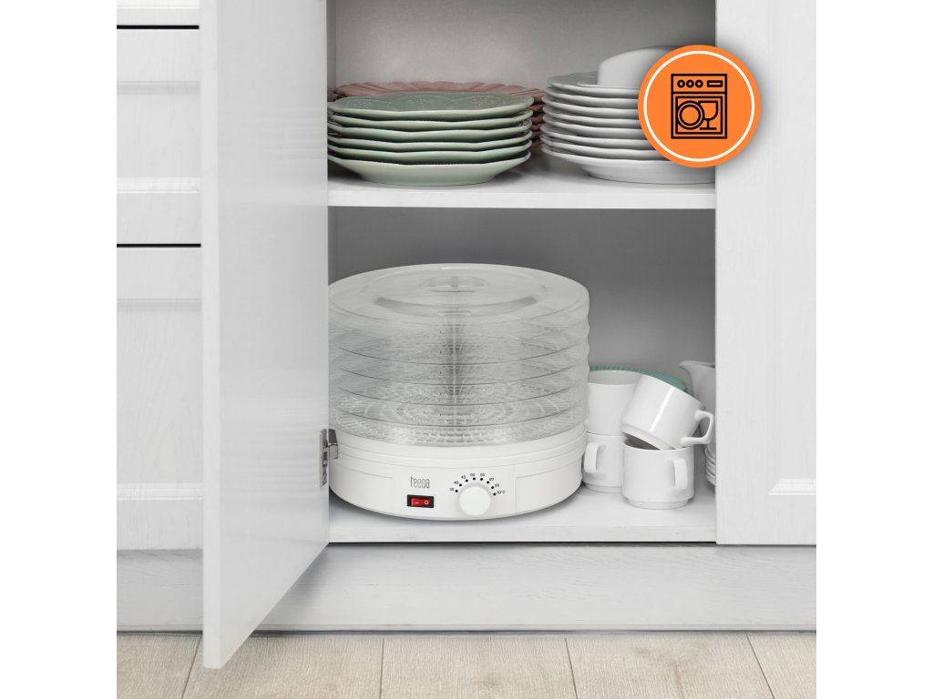 Sušička TSA3030 je vybavená piatimi sitami s priemerom 32 cm, ktoré vám umožnia vysušiť až 5 kg potravín. Teraz si môžete bez ohľadu na ročné obdobie vychutnať dávku prírodných vitamínov alebo prekvapiť svojich priateľov zdravým občerstvením na stretnutiach.