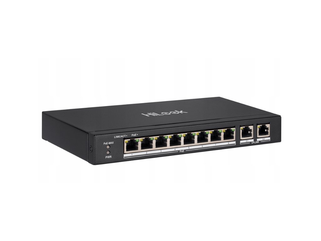 Switch SW-10-POE značky Hilook od Hikvision je sieťový prepínač typu PoE. Zariadenie má 8 portov RJ45 10/100Mbps s podporou technológie napájania PoE v štandarde IEEE 802.3 / 802.3u/802.3xIEEE/ 802.3z/ IEEE 802.3ab a 2 gigabitové RJ45 porty typu Uplink.