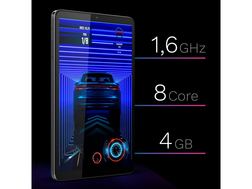 Osemjadrový procesor Unisoc Tiger T606 taktovaný na 1,6 GHz použitý v EAGLE 807 v kombinácii so 4 GB RAM tvoria harmonický a efektívny celok. Vďaka tomu váš tablet bez problémov zvládne niekoľko aplikácií súčasne alebo prehráte filmy a hry vo vysokom rozlíšení.