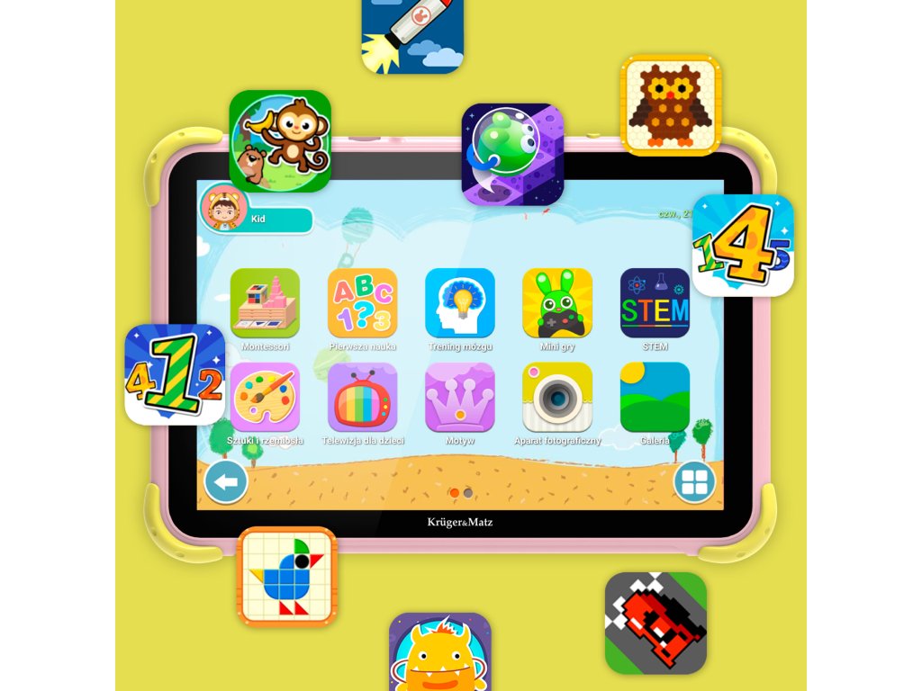 Tablety pre deti by sa mali vyznačovať nielen pevnou konštrukciou, ale aj zaujímavým dizajnom, ktorý z diaľky upúta oko. S ohľadom na to bola farebná obálka tabletu Kruger&Matz FUN 1008 vybavená gumovými rohmi, ktoré poskytujú ochranu pred náhodnými pádmi a otrasmi.