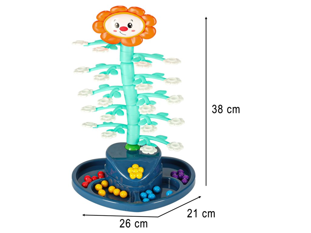 Hra sa začína! Slnečnica sa začne otáčať a rotovať - vašou úlohou je umiestniť farebné guľôčky do radu.
