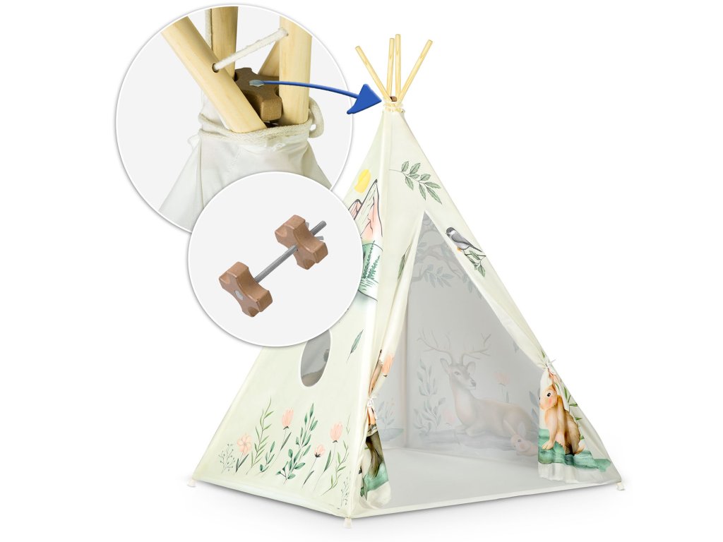 Každý TIPI je dodávaný s krásnym vankúšom so zajačikom a stabilizátorom , ktorý je viditeľný na fotografii!