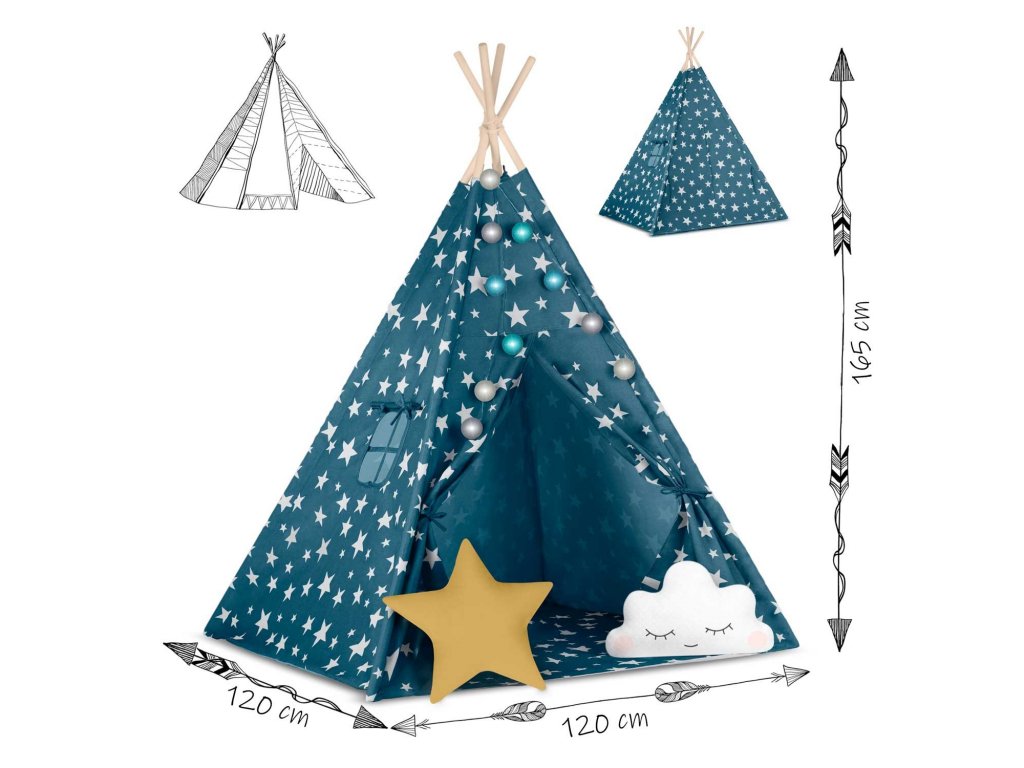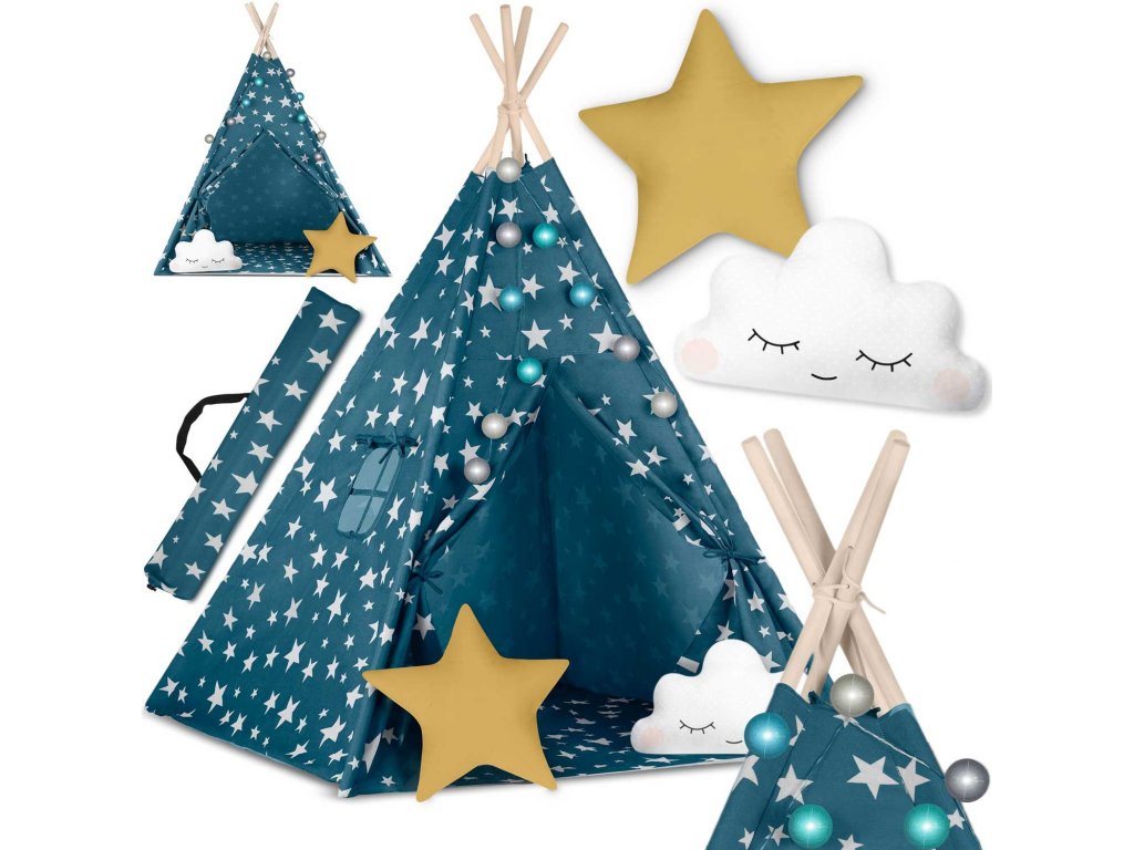 Teepee stan pre deti Tepee so svetlami Nukido - modrý