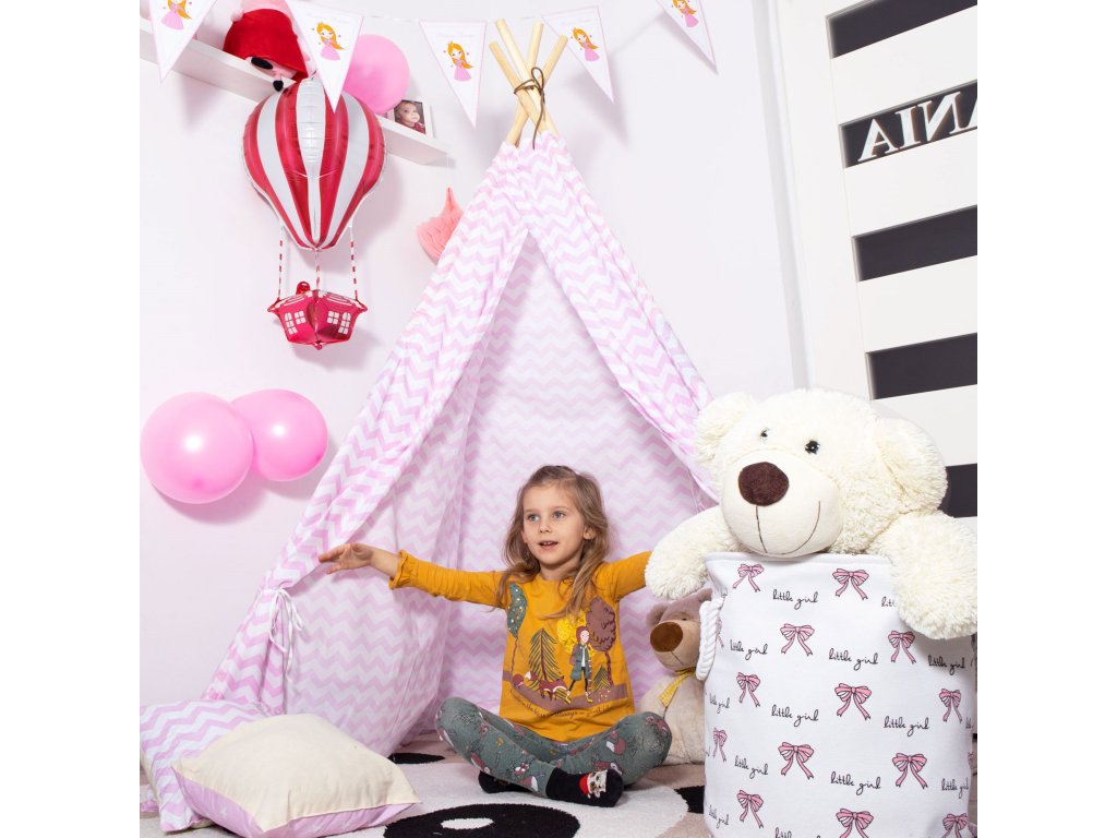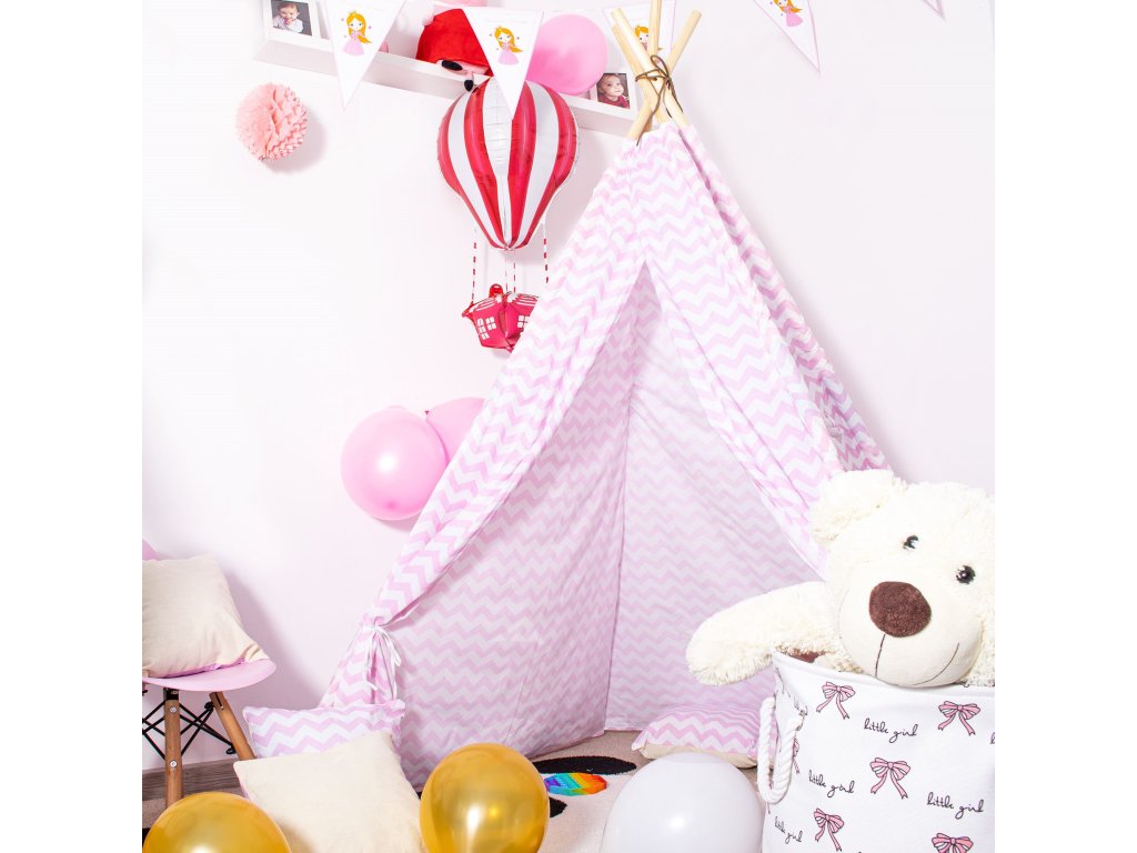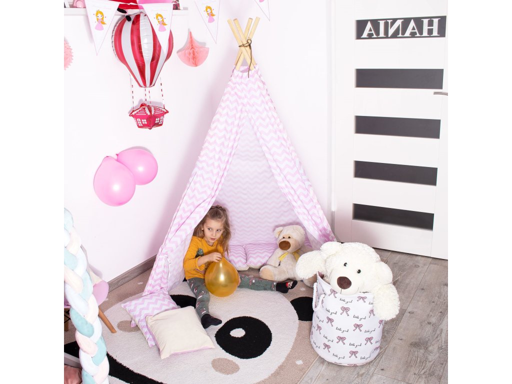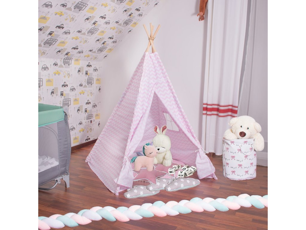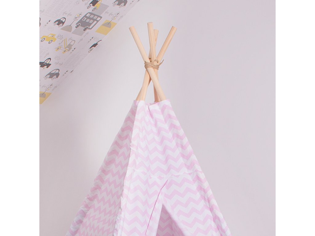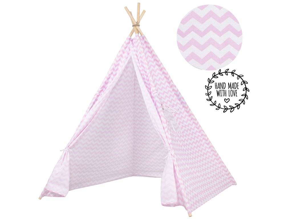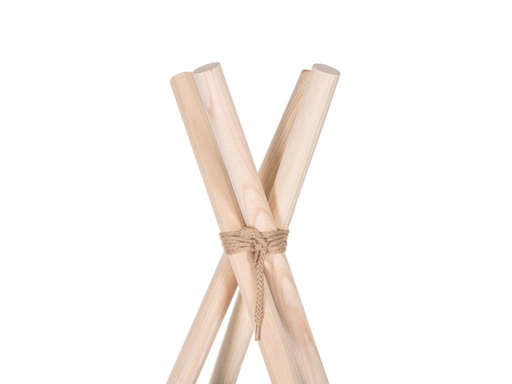 Teepee stan rozmery stanu: 120 x 120 x 165 cm,rozmery tyče: 2,2 x 190 cm,vankúše: 3 ks,gramáž bavlny: 175 g/m2,materiál tyče: borovica.