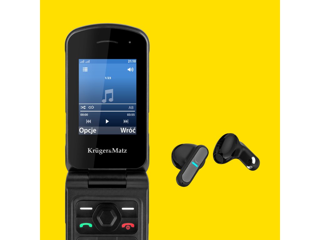 Kruger&Matz Iron 5 Flip je klasický telefón s vyklápacím dizajnom v modernom spracovaní, vytvorený pre ľudí, ktorí si cenia jednoduchosť, odolnosť a spoľahlivosť. Vďaka svojej funkčnosti sa tento model dokonale hodí ako solídny telefón na každodenné použitie – rovnako v práci ako aj počas aktivít na čerstvom vzduchu.
