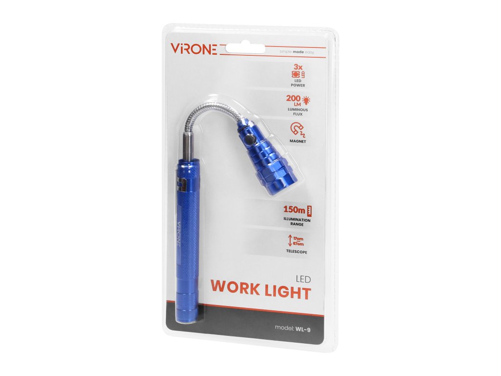 - Teleskopický dizajn: Praktická teleskopická konštrukcia umožňuje nastavenie dĺžky lampy v rozmedzí od 17 cm do 57 cm, čo zaisťuje flexibilitu a prístup do ťažko dostupných miest.