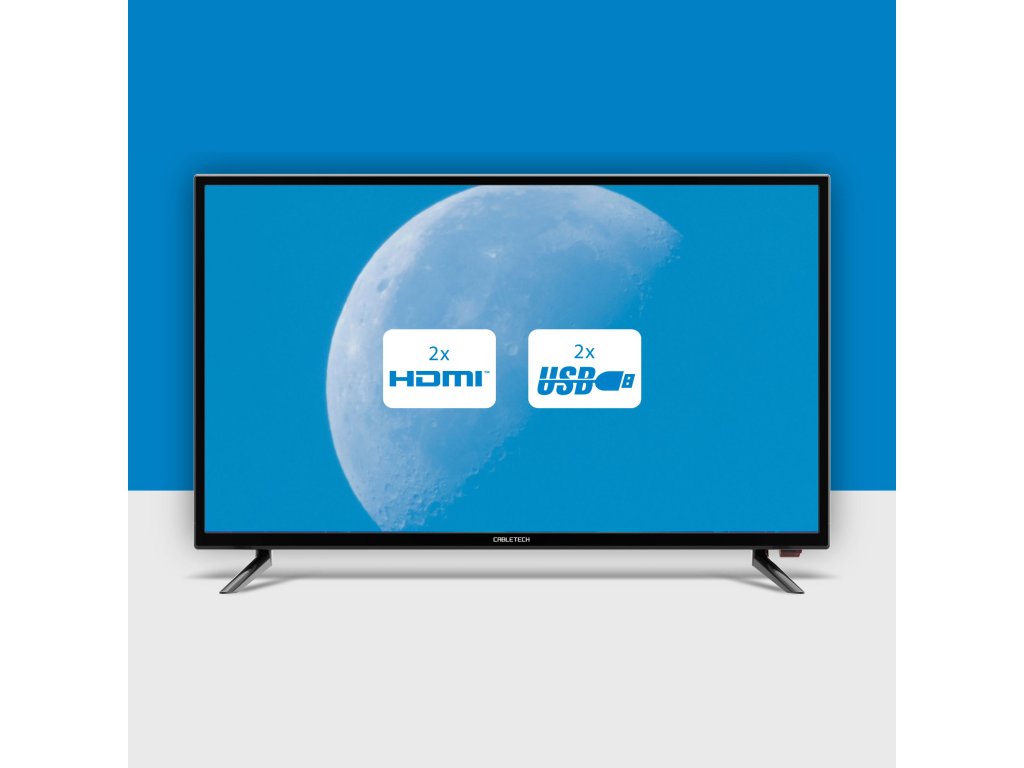 Televízor Cabletech je vybavený panelom vyrobeným v technológii D-LED, vďaka čomu poskytuje veľmi dobré podanie farieb. Rozlíšenie HD Plus, jas na úrovni 220 cd/m2, vysoký kontrast 3000:1 a odozva dosahujúca 8 ms zaistia, že sledovanie obľúbených programov a filmov bude ešte príjemnejšie.