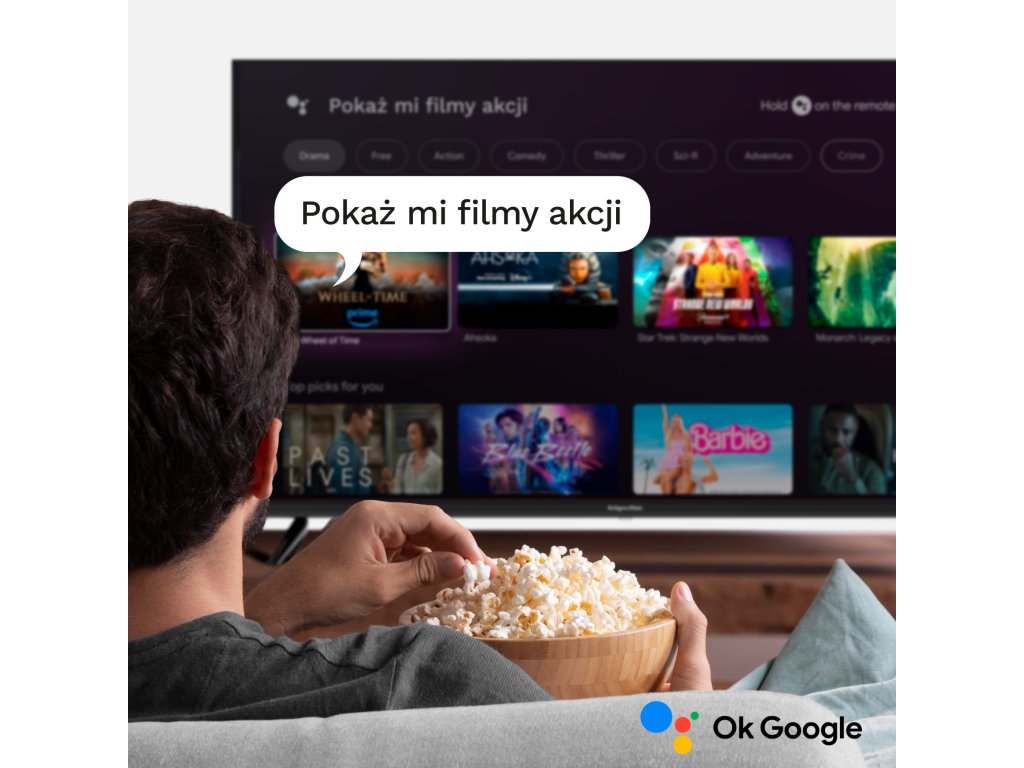 Televízor Kruger&Matz KM0232HD-G sa stane vaším sprievodcom pri hľadaní vhodného obsahu. Stlačte na ovládači tlačidlo na hlasové vyhľadávanie a položte otázku alebo požiadajte o film, ktorý chcete sledovať, a odpovede dostanete priamo na obrazovke.