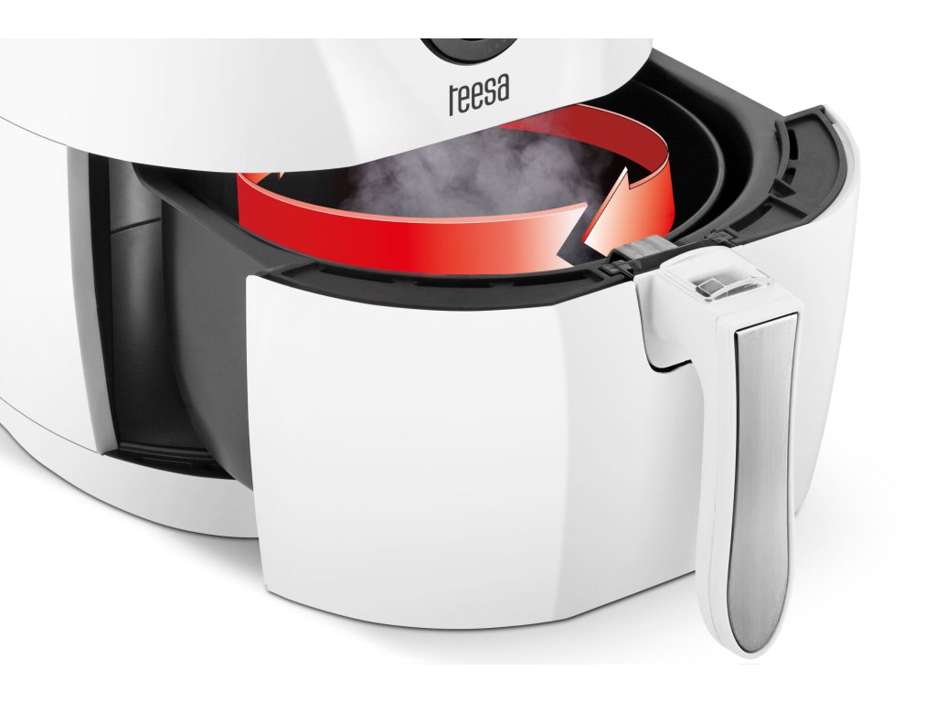 Tajomstvo fritézy Air Fryer spočíva v použití horúceho vzduchu, ktorý znižuje spotrebu oleja na absolútne minimum. Vďaka cirkulácii vzduchu sa spotrebič rýchlo zahrieva a teplo sa rovnomerne rozdeľuje.