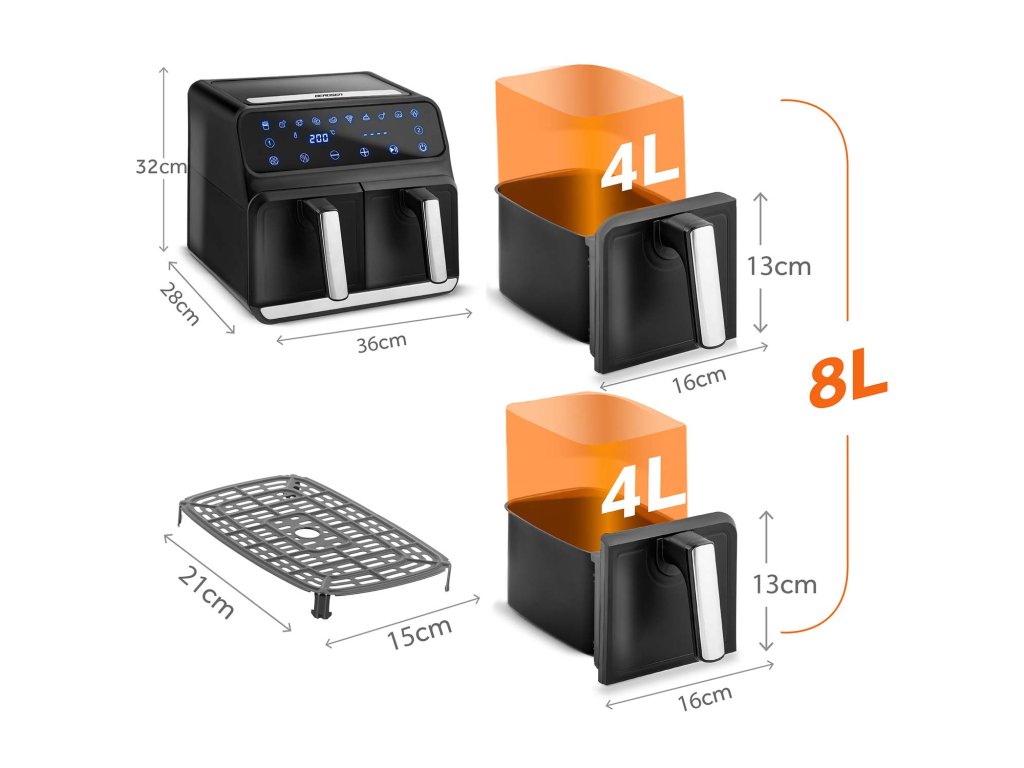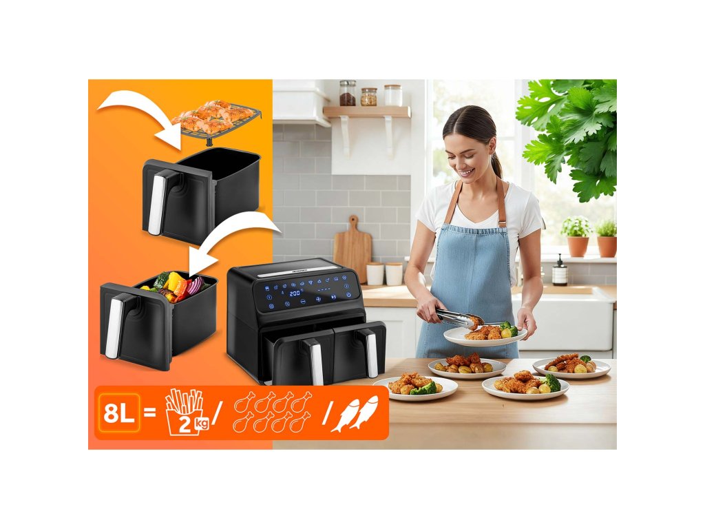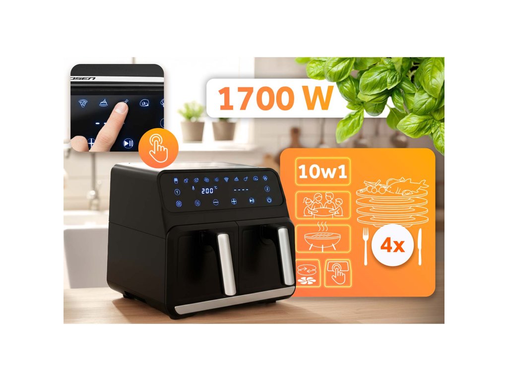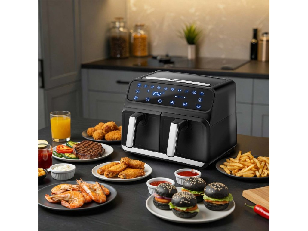 Teplovzdušná fritéza s dvoma košmi a dvoma zónami.