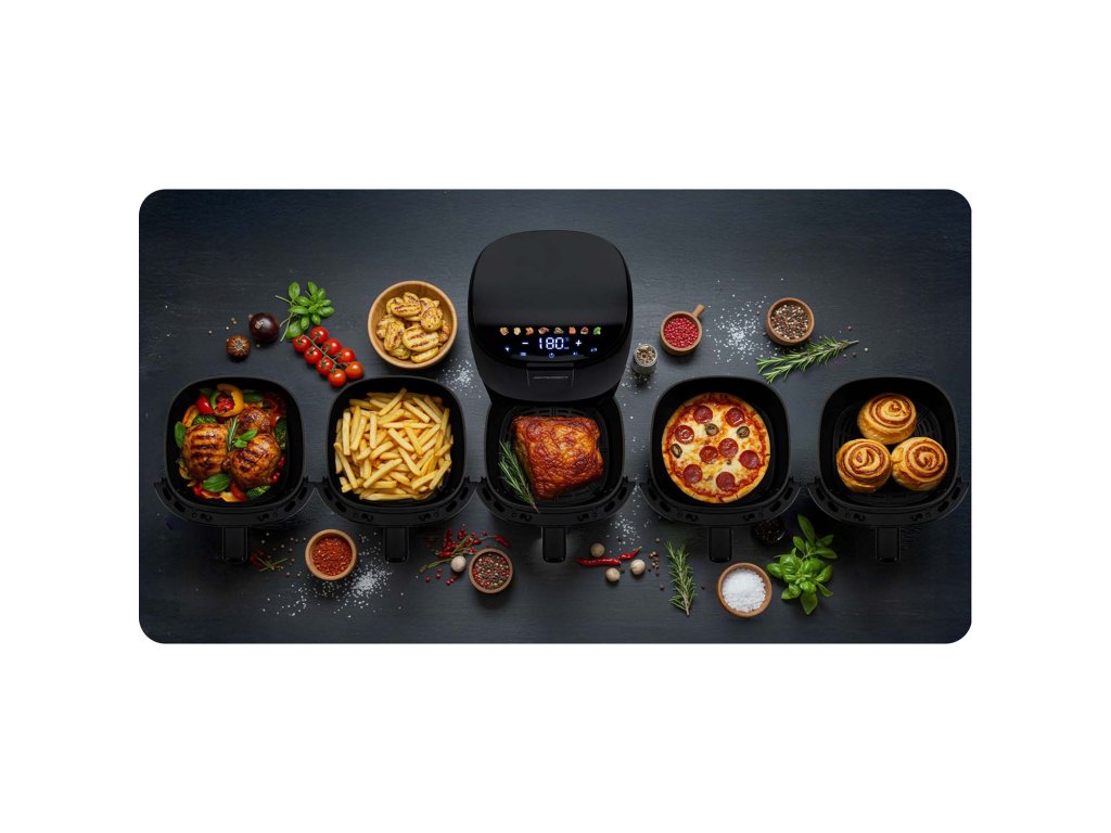 Je to chutná, ľahká alternatíva k smaženiu v hlbokom oleji — bez zápachu, bez striekania a bez zbytočných kalórií.