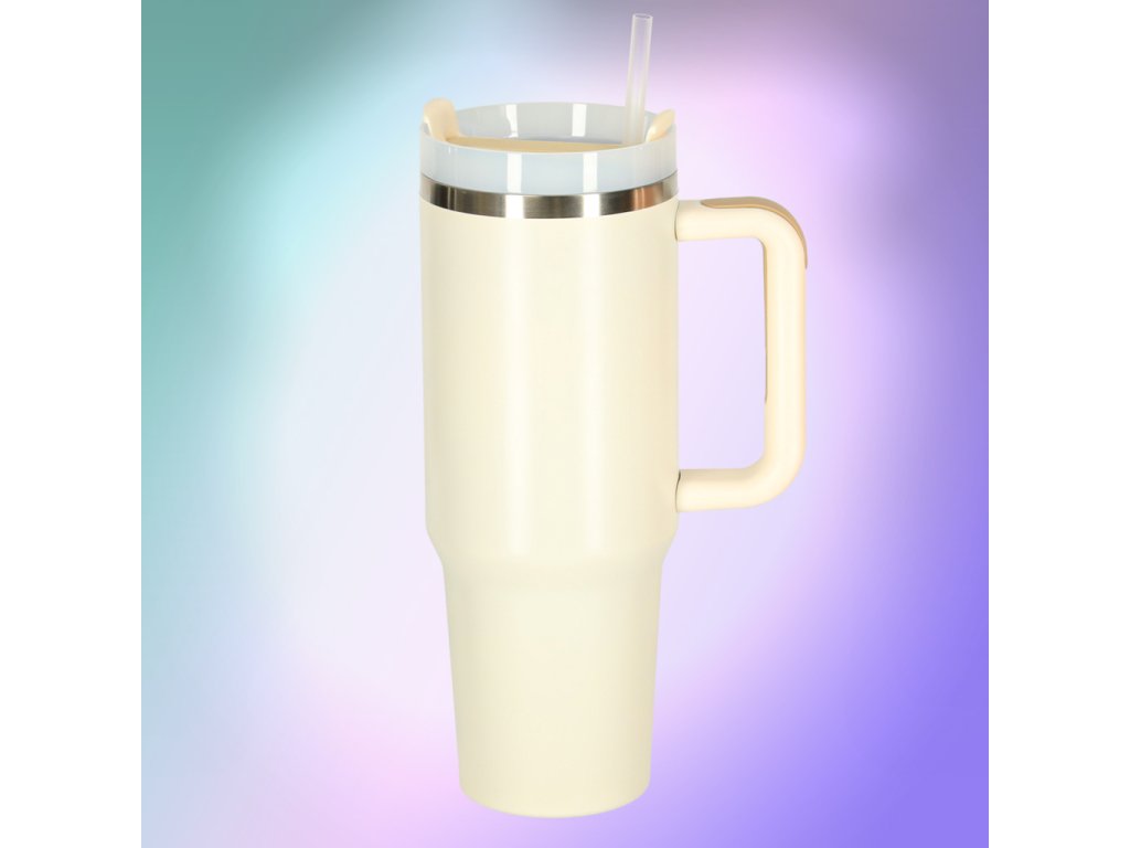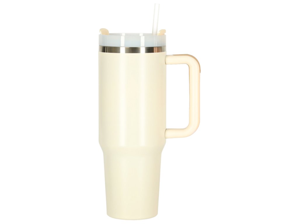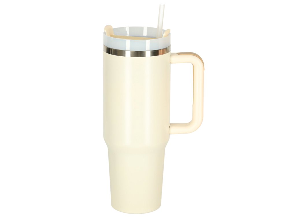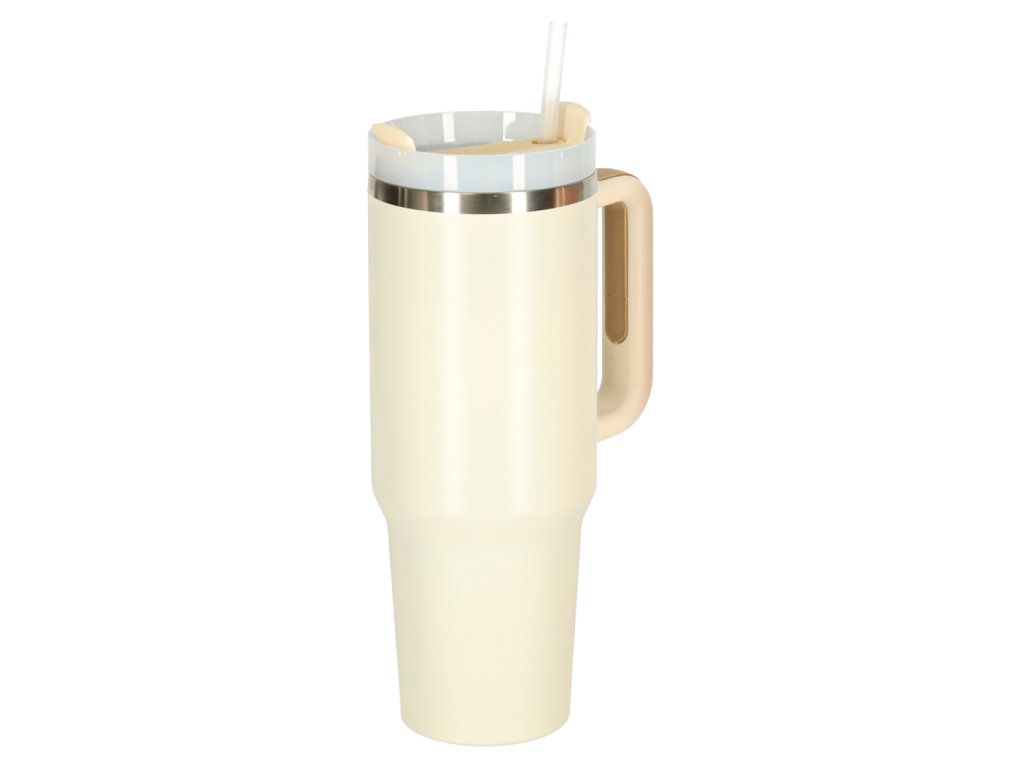 Termohrnček so slamkou a rukoväťou termoska 1200ml krémová