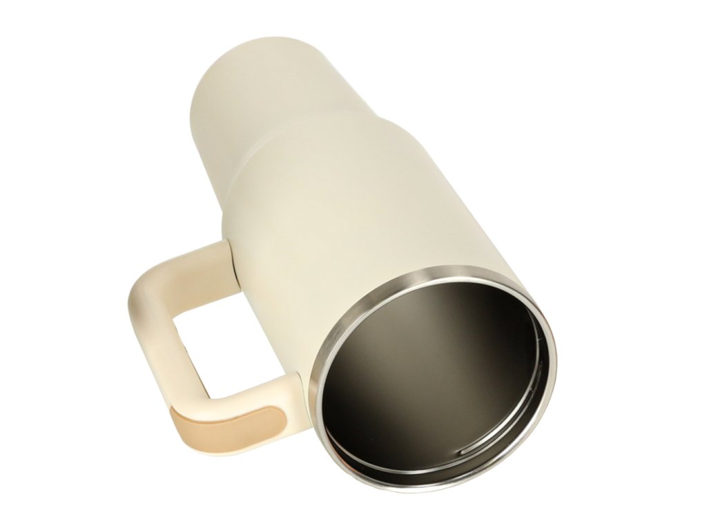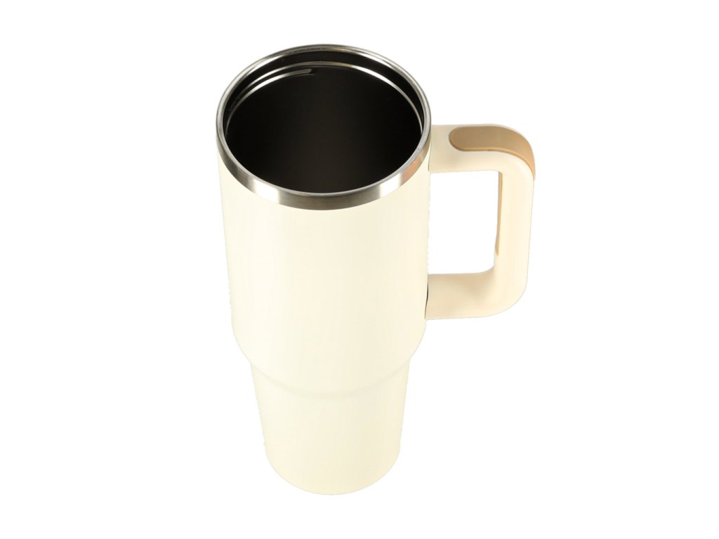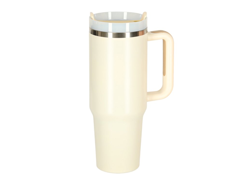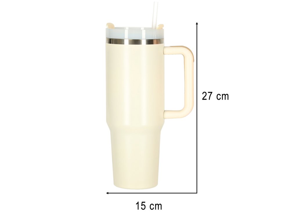 Termohrnček so slamkou a rukoväťou termoska 1200ml krémová