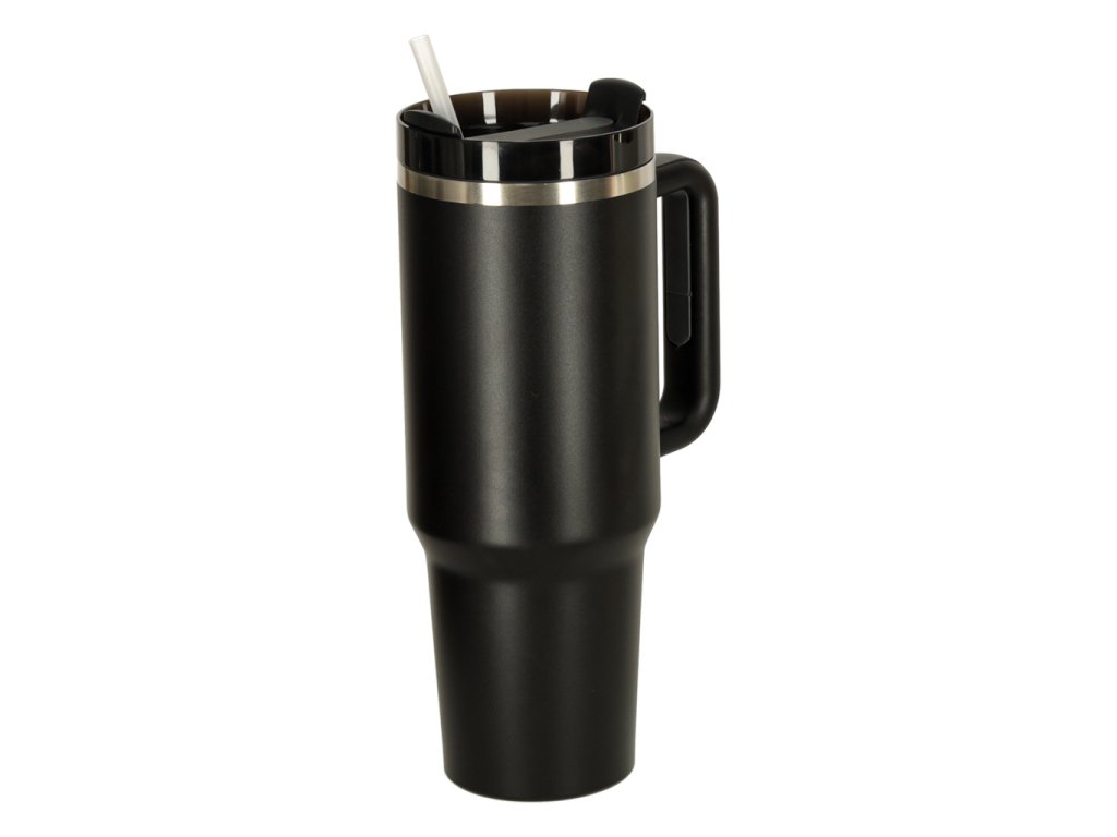 Termohrnček so slamkou a rukoväťou termosky 1200ml čierny