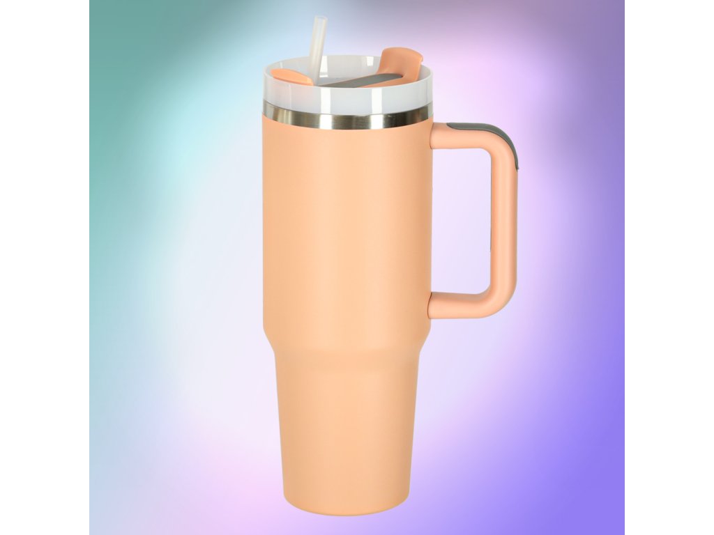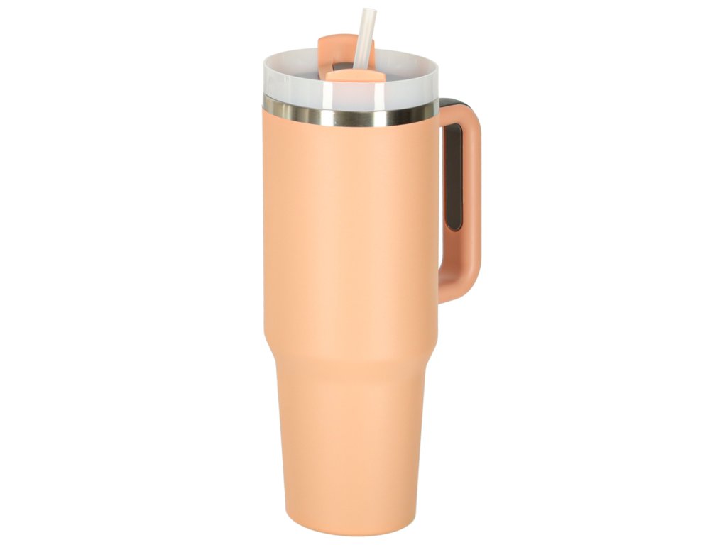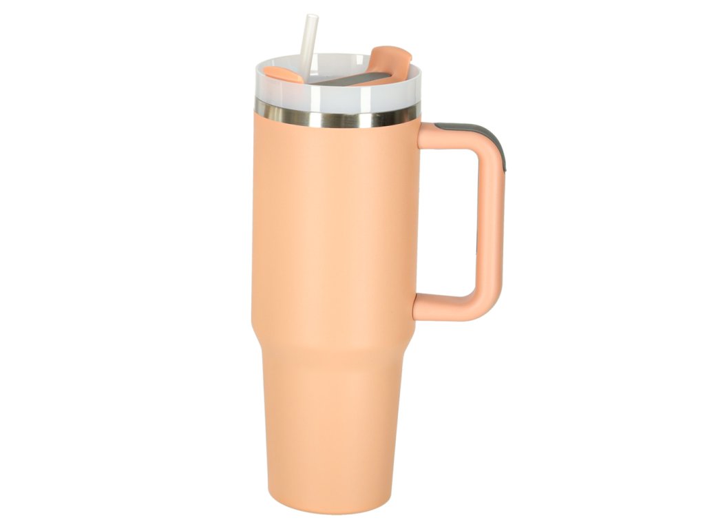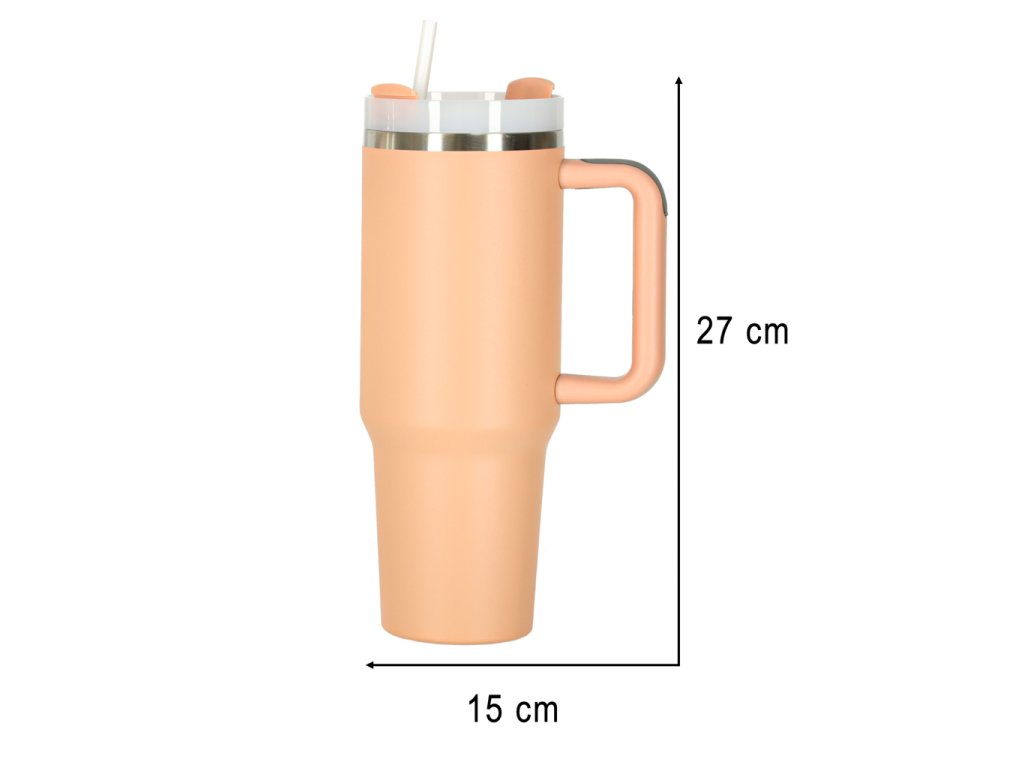 Termohrnček so slamkou a rukoväťou termosky 1200ml púdrovo ružový