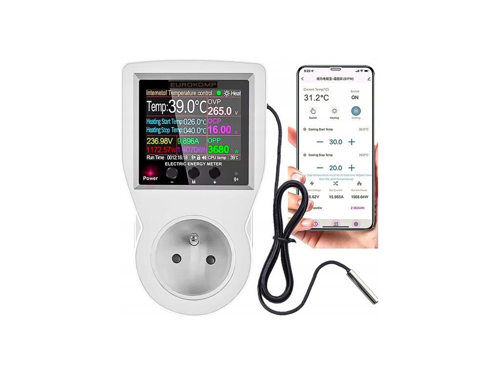 Termostat so zásuvkou 230V, merač energie, WiFi Tuya