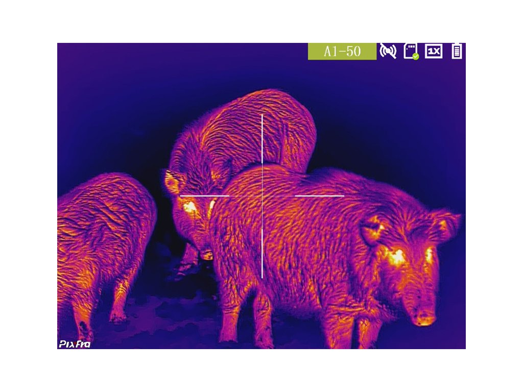Termovízne monokuláry Pixfra Chiron majú 6 dostupných režimov pozorovania (farebných paliet) v tepelnom pásme:
