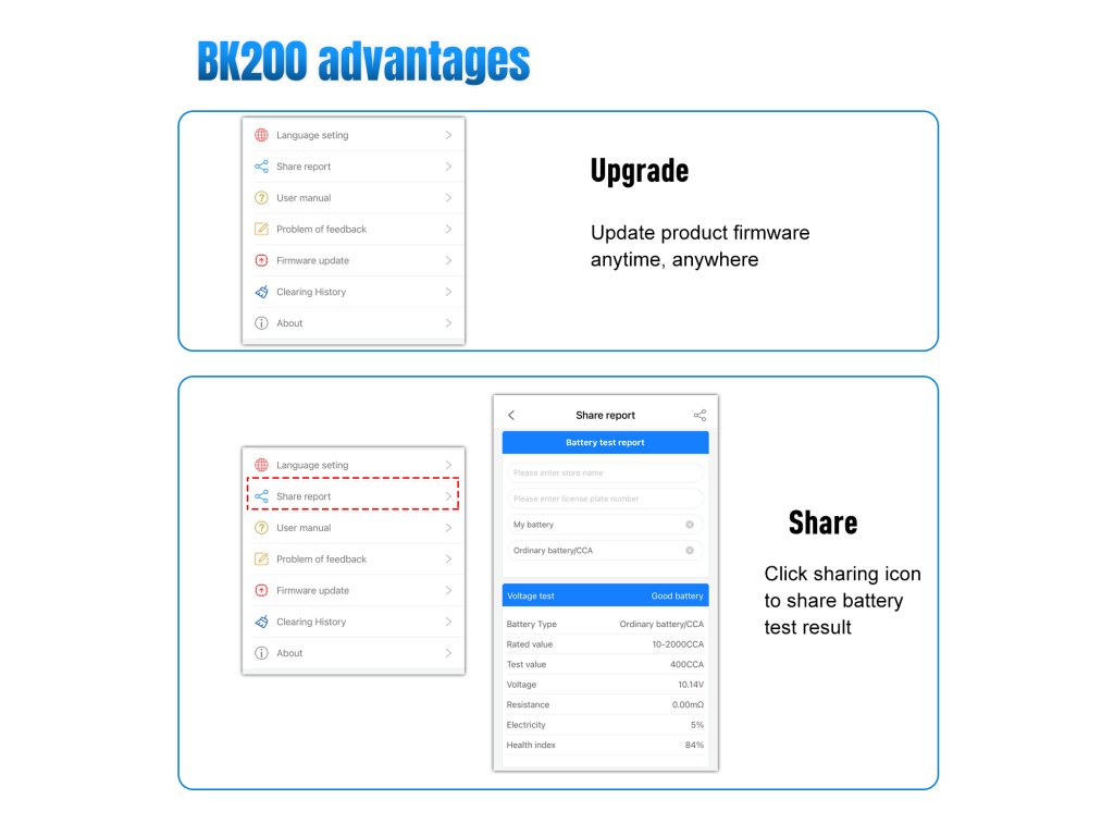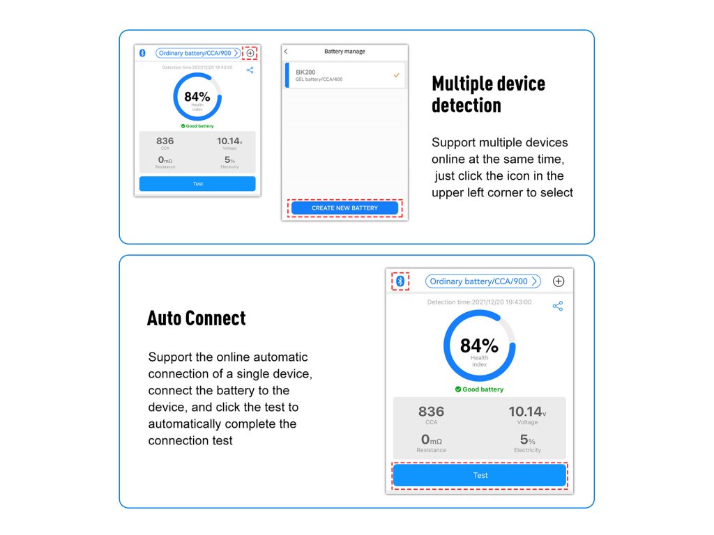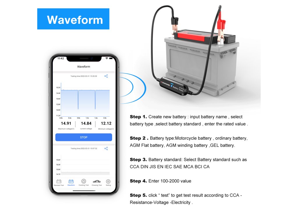 Režimy: bežný test, test štartu, test nabíjania