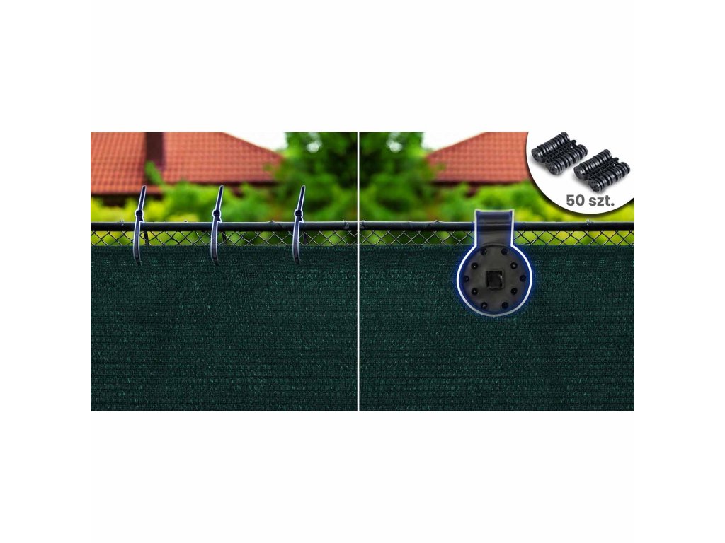 Profesionálne sponky v sade (50 kusov) výrazne uľahčujú montáž siete. Vďaka nim rýchlo a stabilne pripevníte kryt na oplotenie, bez potreby použitia ďalších nástrojov. To je záruka pevného pripevnenia a estetického dokončenia!